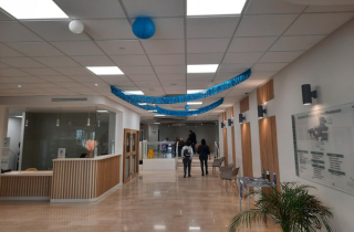 Que diriez-vous de débuter la matinée par un café et une viennoiserie… avant de profiter d’un petit massage plantaire ? Pour la journée de prévention organisée le 6 mars dans le splendide hall paré de guirlandes bleues, l’IDE Magali Greca et son équipe ont associé bien-être et partage d’information. « La réflexologue et la socio-esthéticienne de l’association Onco-Partage ont prévu des massages et la pose de vernis, aussi bien pour le personnel que les patients et visiteurs », indique Mme Greca. « De mon côté, je tiendrai un stand avec une documentation complète, tandis que la stomathérapeute d’un laboratoire partenaire répondra à toutes les questions sur la prévention, les traitements, le suivi des soins, etc. » À 11 heures, le bleu montera d’un cran dans le hall avec la photo de groupe du personnel aux couleurs de l’événement.